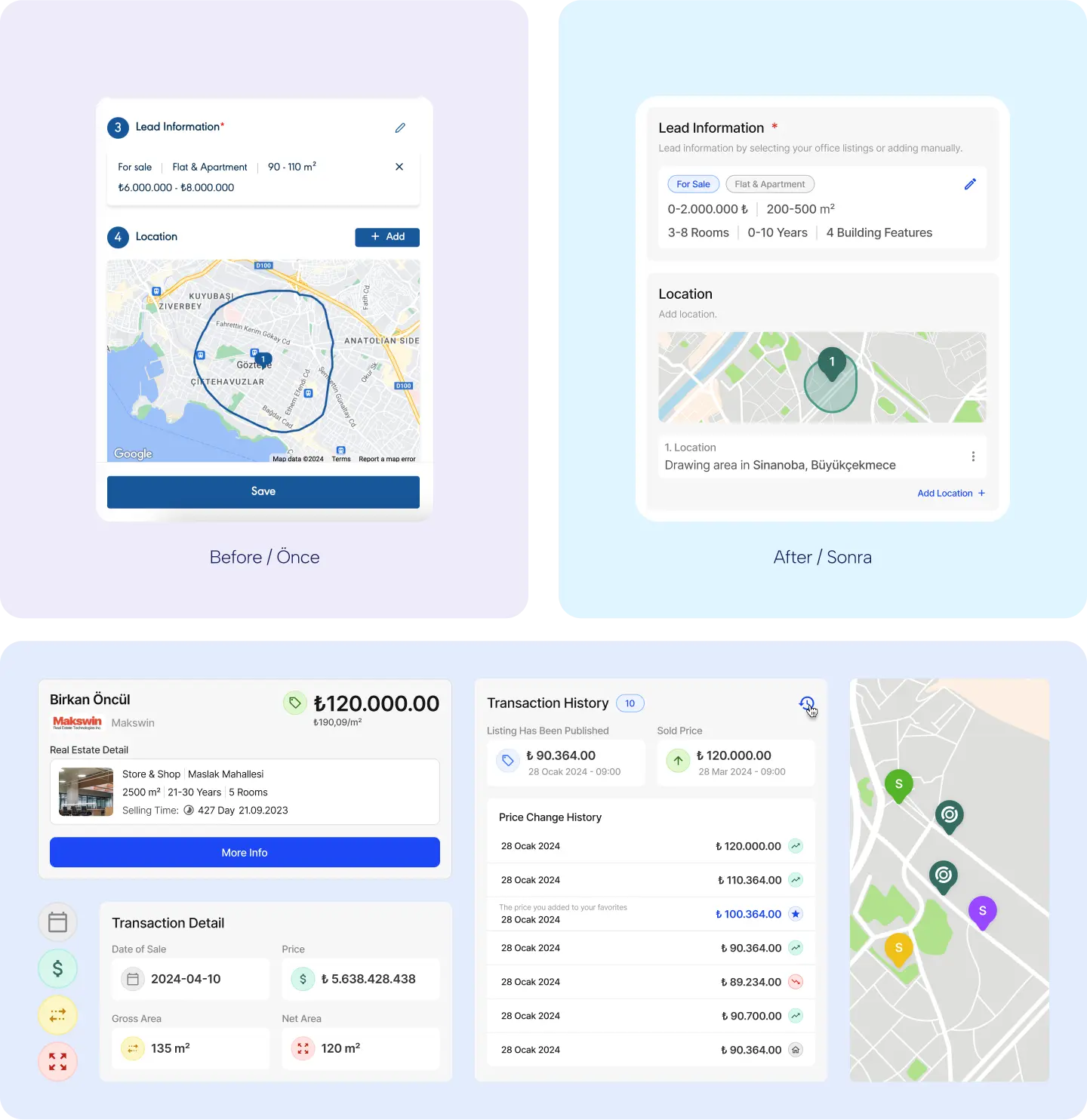 Potansiyel alıcı ve satıcı ekleme sürecindeki en kritik detaylardan biri, kullanıcı alışkanlıklarının dışında bir tasarım olan soldan açılan yan panel kullanılmasıydı. Başta bu problemi kullanıcı alışkanlıklarına göre güncelleyerek olması gereken yerine aldık.